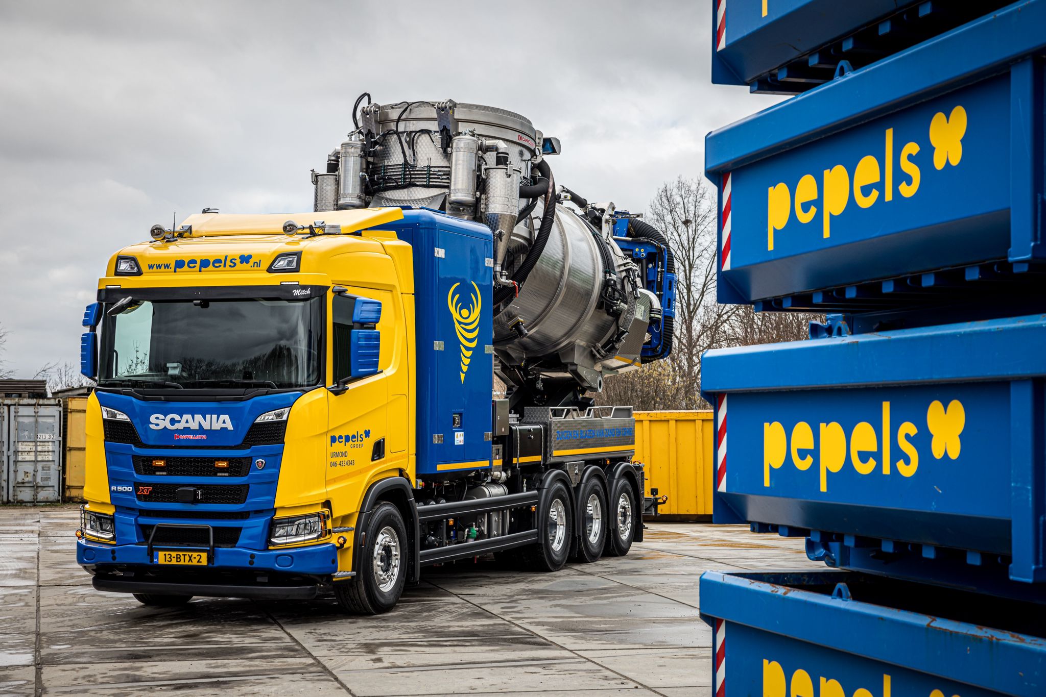 Als basis is gekozen voor een degelijke Scania R500 8×4 met een OMSI F PTO. Met deze PTO kon de pomp rechtstreeks op de versnellingsbak worden aangesloten. Wij wensen onze machinist Mitch veel plezierige en veilige draaiuren en kilometers toe met deze unieke machine in het zuiden!!!